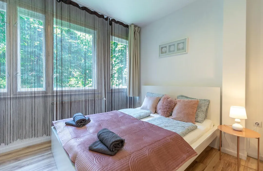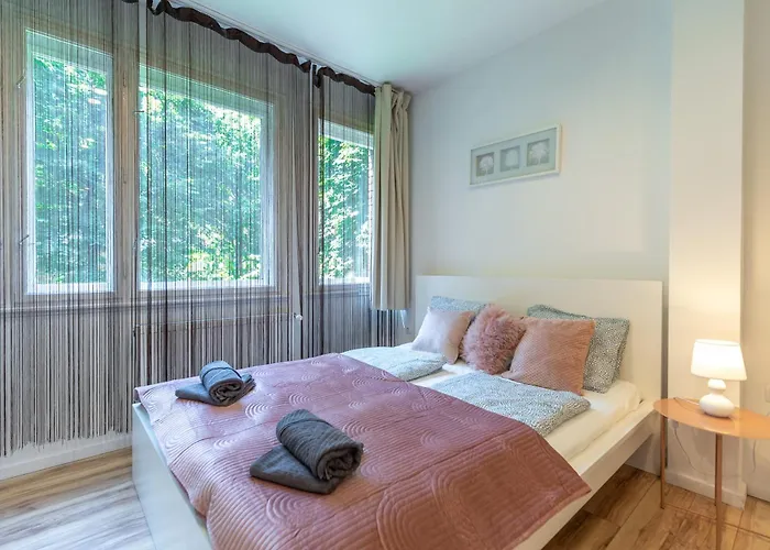 Een ingerichte keuken met koffie- en theefaciliteiten, een koelkast, een oven is beschikbaar als onderdeel van de zelfvoorzienende voorzieningen van het appartement. Het is gesitueerd op 450 meter verderop WizzAir bushalte.